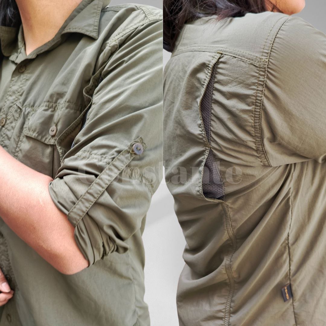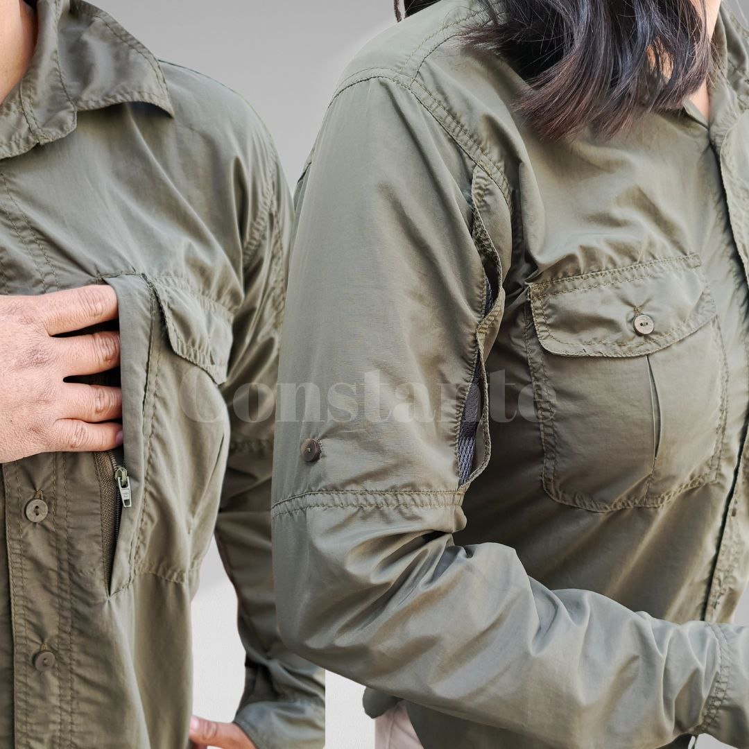 La camisa safari es la prenda perfecta para quienes buscan comodidad, protección y funcionalidad en sus expediciones al aire libre. Fabricada con una tela transpirable, permite una óptima circulación del aire, manteniéndote fresco incluso en climas cálidos. Su tecnología de secado rápido evita la acumulación de humedad, lo que la hace ideal para largas jornadas de senderismo, camping o actividades al sol. Además, cuenta con protección UV, ayudando a bloquear la radiación solar para mayor seguridad en terrenos expuestos.