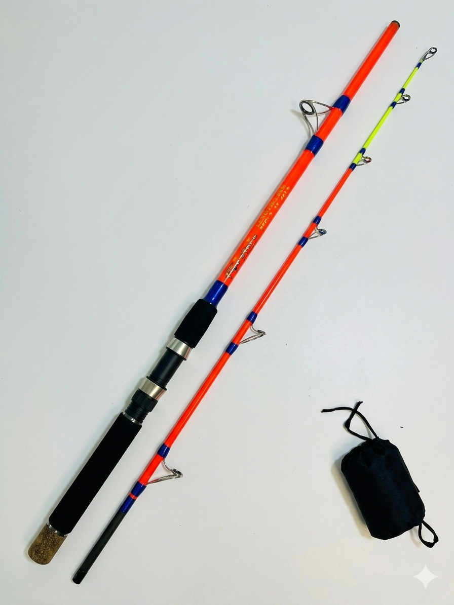 Esta versión de 2.10 metros mejora notablemente la palanca de lanzamiento y la sensibilidad en el clavado. Incluye un porta-carrete reforzado de grafito y acero, diseñado para calzar perfectamente cualquier reel frontal. Su mango de Goma EVA de alta densidad ha sido extendido para ofrecer un mejor punto de apoyo, complementado con un elegante regatón de corcho que protege la base de impactos contra el suelo o la borda de la lancha.