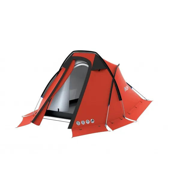 Carpa 4 estaciones ( rango de uso: 2.000 m.s.n.m. a 5.900 m.s.n.m.), ideal para senderismo, trekking, excursiones exigentes, ya que equilibra protección climática como nieve de alta densidad, aguaceros fuertes, lugares calurosos ó húmedos. Te aporta ligereza y versatilidad. Diseñada para condiciones extremas de invierno (nieve intensa o temperaturas bajo cero prolongadas en alturas que sobrepasan los 5500m de altura).
