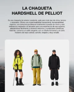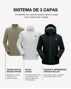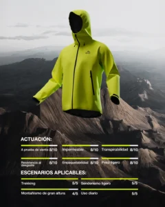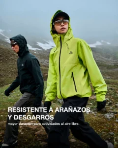 Chompa impermeable para actividades extremas, unisex. Su tecnología de tres capas permite una impermeabilidad superior y transpiración. Manteniéndote seco y fresco. Es resistente a arañazos y desgaste.
