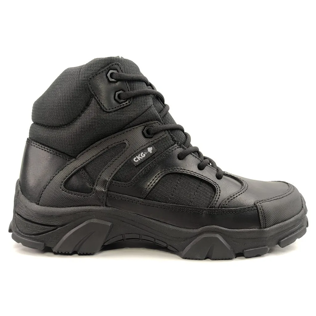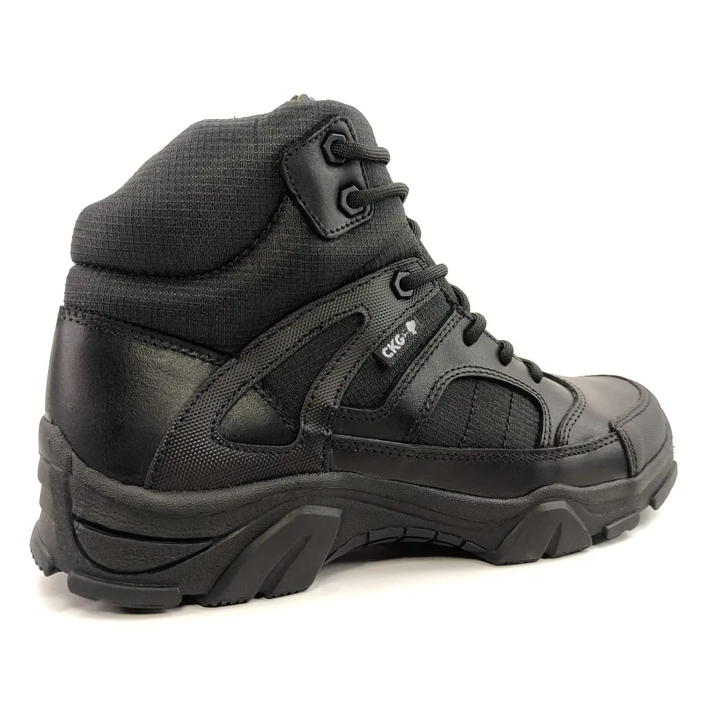 Desarrollamos un producto que combinara la resistencia y suavidad de unas zapatillas, son botines para tierra y asfalto. Su capellada es de cuero, textil repele al agua con apliques y cordoneras inyectadas en TPU. Su suela es ligera y antideslizante en Cuacho-nitrilo. La plantilla interior es anti- microbiana, resistente a la flexión, deshumidifica rápidamente y brinda soporte en el arco del pie (más confort), evita torceduras. La plantilla interior en EVA y su forro es en lycra para una increíble experiencia y confort.