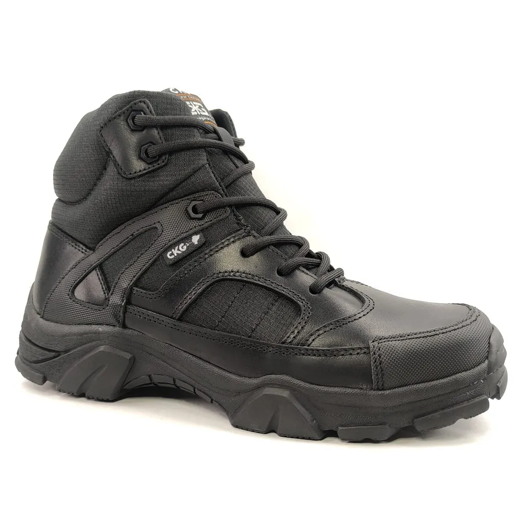 Botines de montaña tácticos Diabolo II Mid H, Capellada en cuero, textil ripstop + EVA y sintético. Altura de caña: 16 Cm aproximadamente según talla. Suela de Caucho-nitrilo ligero y antideslizante. Plantilla interior anti- torsión. Plantilla exterior en EVA. Forro interior en Lycra. Peso: 1000 Gramos par aproximadamente según talla.