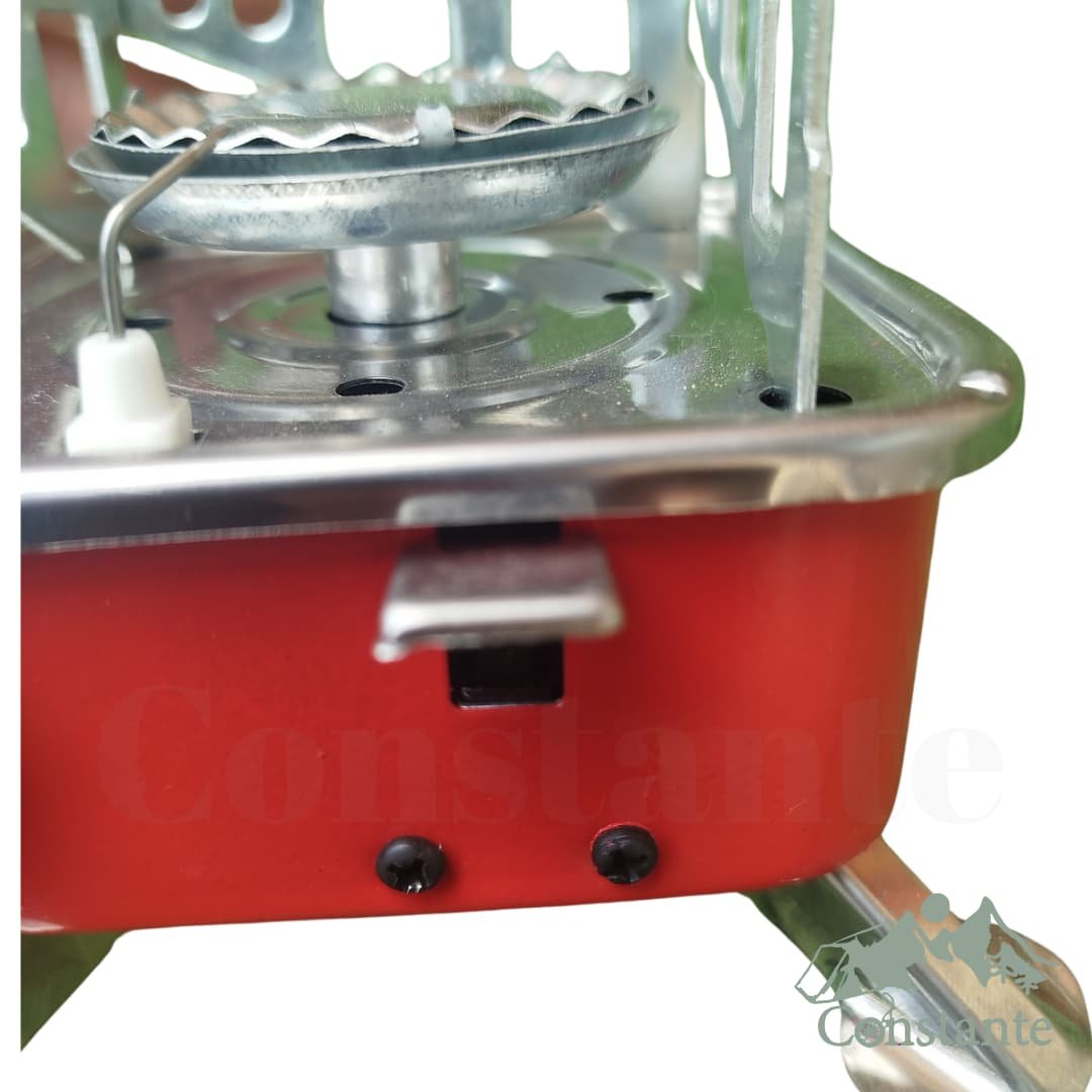 Hornillo ideal para camping o actividades al aire libre . Fabricado en aleación de aluminio y acero inoxidable, encendido automático, soporta altas temperaturas y condiciones extremas.