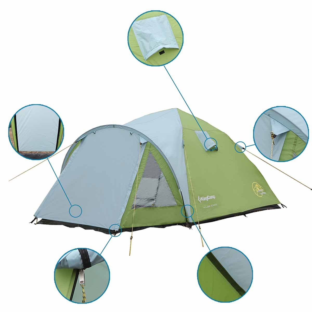 Carpa para 3 Personas KingCamp KT3027 Holiday, 3 Estaciones, 100% Impermeable.
