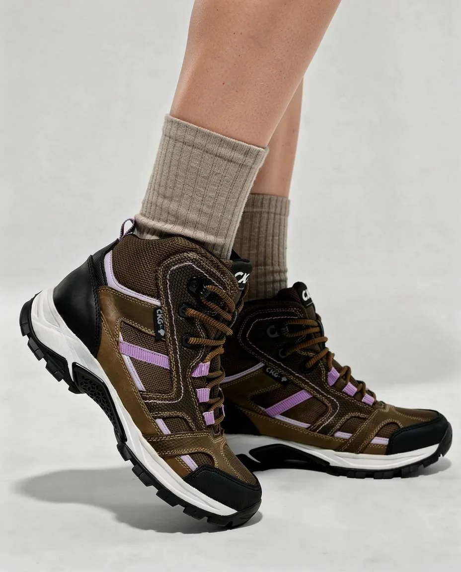 El Botín Trekking Olimpo A-02 Medio para mujer es un calzado de montaña diseñado para montañas híbridas. Incorpora sistema de estabilidad SS2 y membrana impermeable AWS 180 – Protección avanzada para clima frío, nieve y superficies húmedas.