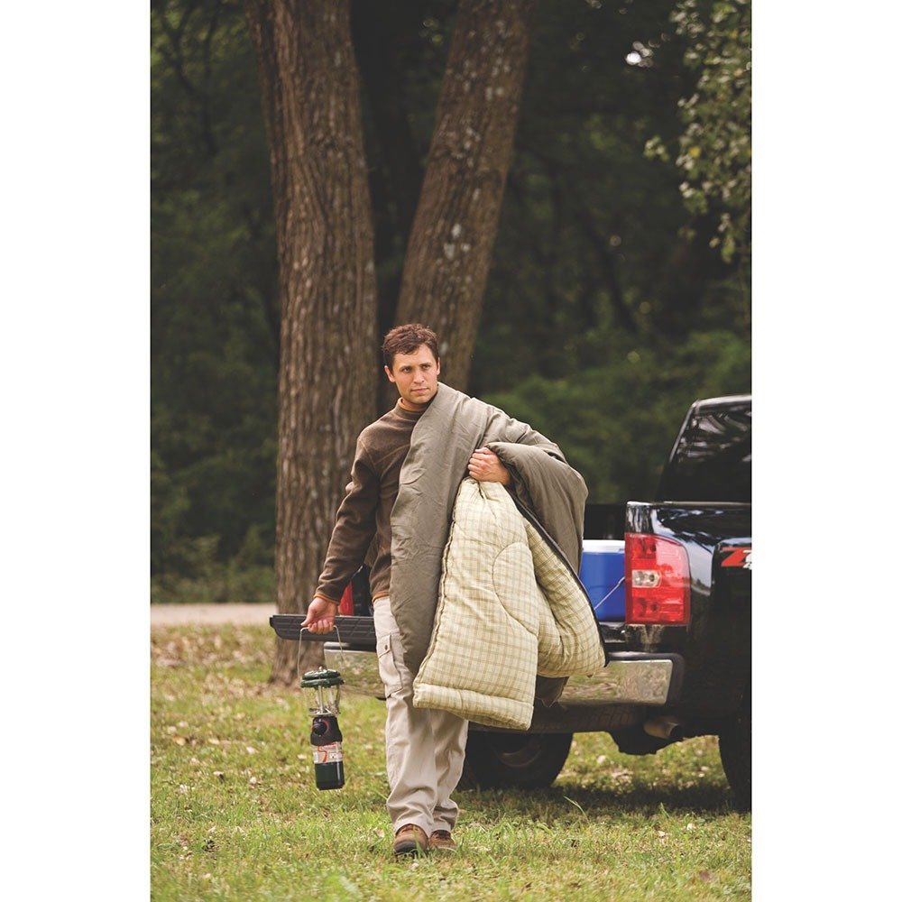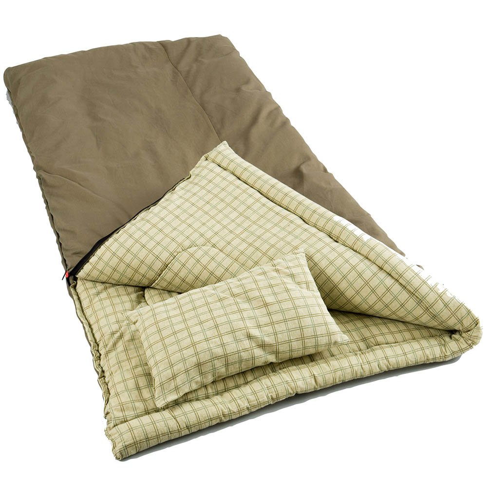 Duerma cómodamente, incluso cuando esté a 0⁰ F afuera, en el saco de dormir grande y alto Coleman® Big Game ™ con una cubierta de lona de algodón y un cómodo forro de algodón con franela. La construcción de la cubierta completa se traba en el calor eliminando los puntos fríos, haciéndolo perfecto para el clima extremo. El diseño del sleeping proporciona calidez en los campistas de arriba a abajo. El  diseño de la cremallera evita inconvenientes al momento de abrir o cerrar. La función Comfort Cuff ™ rodea su rostro con suavidad cuando duerme y el sistema Thermolock ™ reduce la pérdida de calor a través de la cremallera. La construcción Fiberlock ™ evita que el aislamiento se desplace, extendiendo la vida de su saco de dormir. Cuando estés listo para empacar, nuestro sistema patentado Roll Control ™ mantiene la bolsa en su lugar para facilitar el balanceo y el sistema de empaquetado. La bolsa se puede lavar en máquina y viene con una almohada de franela.