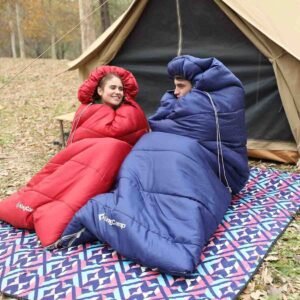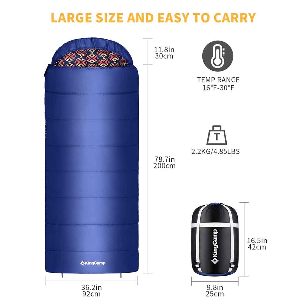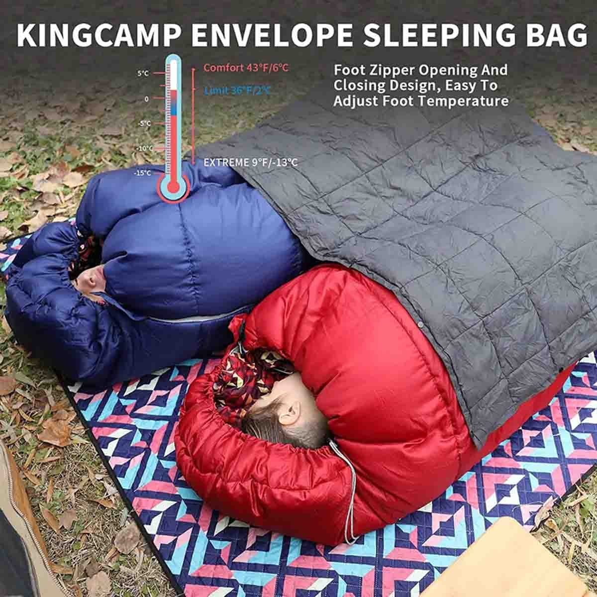 El saco de dormir KingCamp ofrece una excelente relación calidad-precio gracias a su gran calidez y su forma ampliada. El aislamiento de tela de celosía de diamante 210T 100 % poliéster atrapa el calor térmico con su ligero relleno de algodón hueco , lo que garantiza que duermamos profundamente. También podemos usar la cremallera para unir dos sacos de dormir individuales y convertirlos en un saco de dormir doble, lo que nos da más opciones.