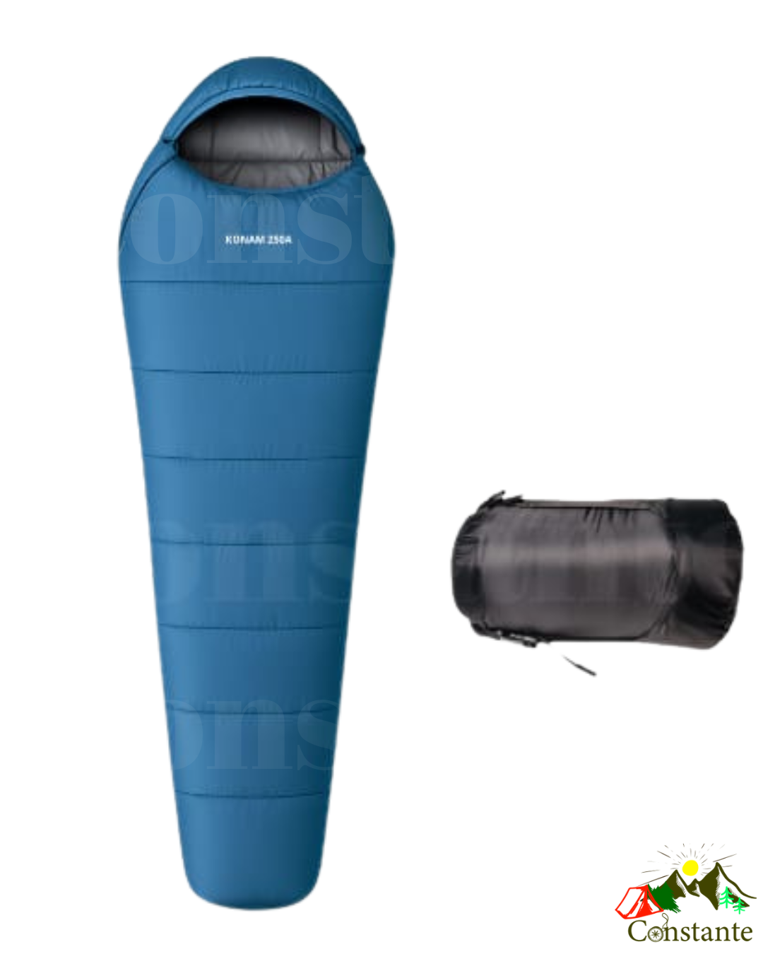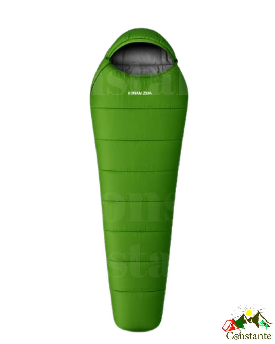 Saco de dormir compacto y ligero (1.5 kg), fabricado en nylon ripstop 20D y poliéster 40D con relleno de fibra sintética para máxima calidez. Incluye cremallera YKK de doble dirección con solapa anti-viento, capucha ergonómica ajustable y acabado DWR repelente al agua, ideal para mantener comodidad y protección en condiciones exigentes.