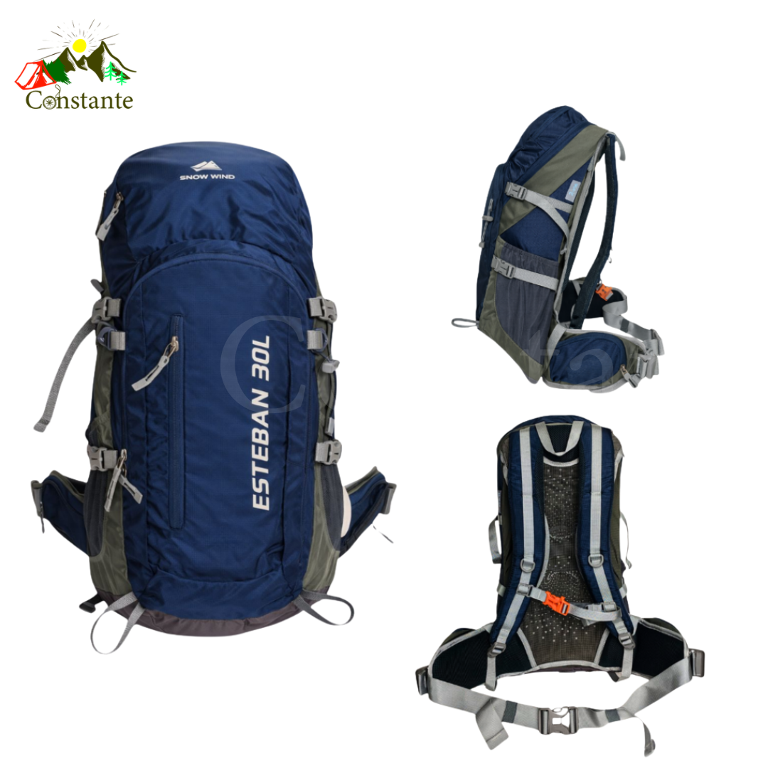 Mochila de camping Snow Wind con capacidad de 30 litros, diseñada para ofrecer resistencia, comodidad y organización en tus aventuras al aire libre.