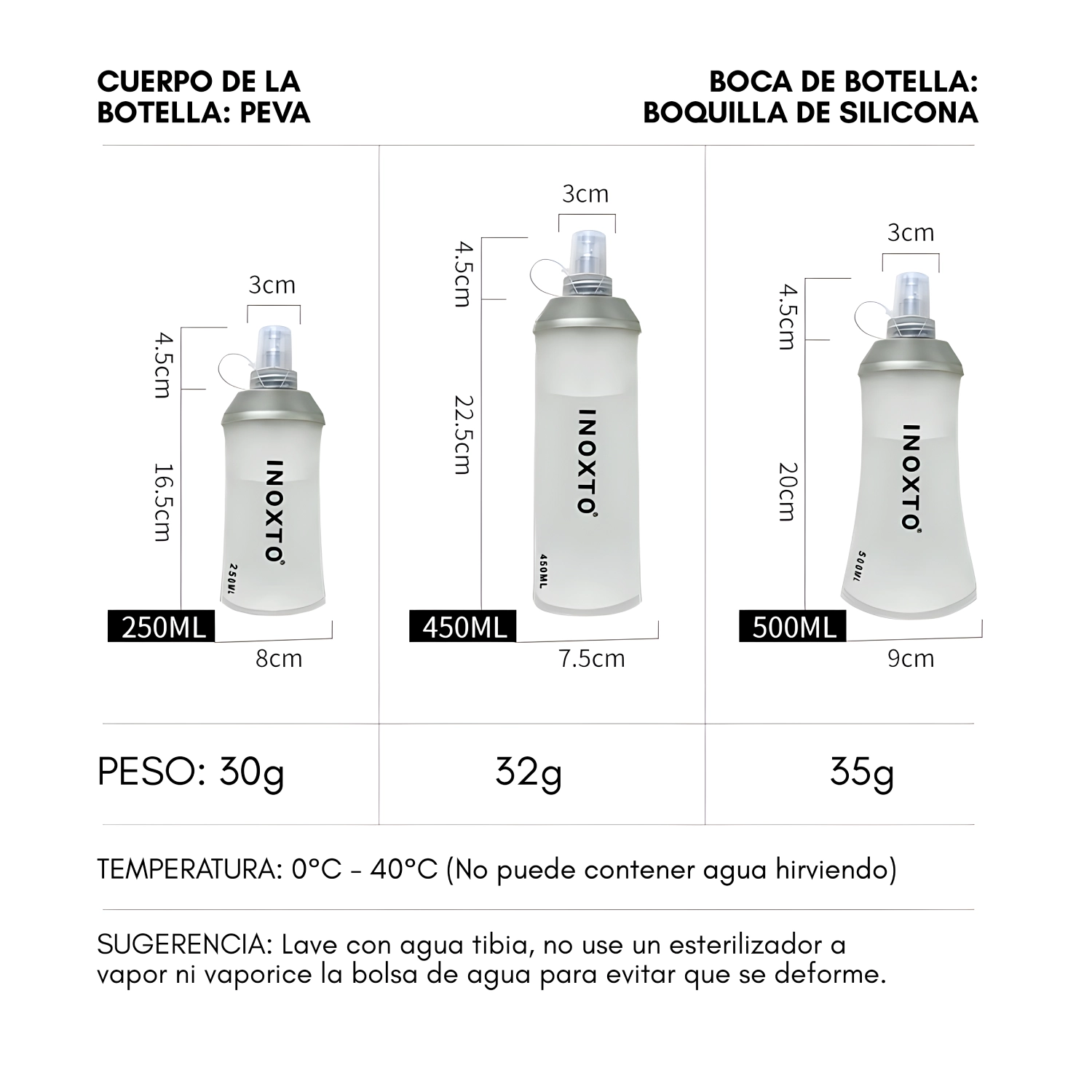 Opciones de tamaño: La variante de 500ml proporciona una opción conveniente para la hidratación en movimiento, y los tamaños adicionales incluyen 250ml y 450ml para preferencias personalizadas.