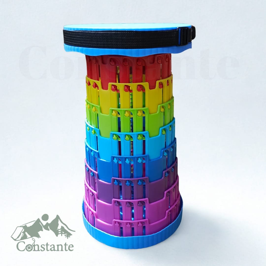 Este taburete plegable está fabricado con polipropileno grueso de alta resistencia, ideal para uso en interiores y exteriores. Su diseño incluye un sistema de bloqueo por hebillas capa por capa (144 en total), que permite una altura ajustable desde 7 cm hasta 45 cm. Soporta hasta 300 kg (660 libras) y cuenta con base antideslizante, pestillo de seguridad y una correa de transporte ajustable.