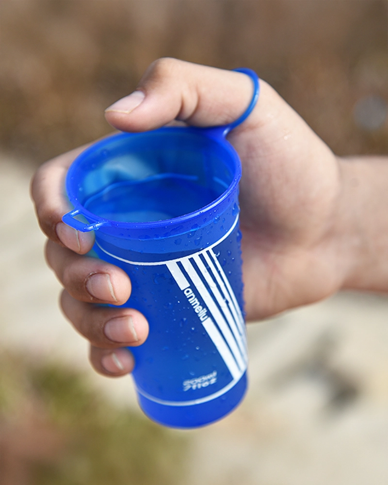 El vaso de agua blando para correr y hacer senderismo se puede colgar en la mochila conectando la correa de mano y el gancho portátil.