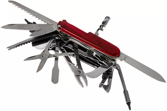 la navaja Victorinox Swiss Champ XLT, es un modelo legendario de Victorinox ya que ofrece un gran numero de herramientas para portar en tu bolsillo. Diseñada para aventureros, coleccionistas y profesionales que buscan máxima versatilidad, combina la tradición suiza con un diseño compacto y práctico.